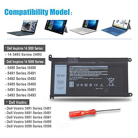 Thông tin sản phẩm 42Wh YRDD6 Battery for Dell Inspiron 15 3000 Series 3582 3583 3584 3501 3593,Inspiron 15 5000 Series 5584 5593 5594 5598 5585,Inspiron 14 5481 5482 5485 3493 5491 5493 Latitude 3310 Vostro 5590 2-in-1