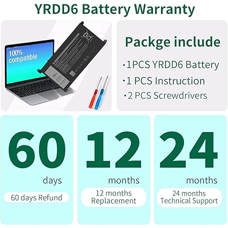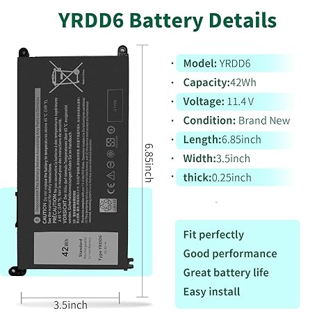 Thông tin sản phẩm 42Wh YRDD6 Battery for Dell inspiron 15 3000 Series 3583 3593 3582 3584 3501,inspiron 15 5000 Series 5582 5584 5593 5594 5598 5585 14 3493 5481 5482 5485 5491 5493 7586 Vostro 5481 1VX1H P93G P75F