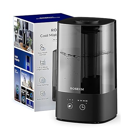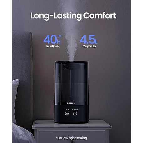 Thương hiệu Rosekm là cái tên nổi tiếng được rất nhiều khách hàng trên thế giới chọn lựa. Với kiểu dáng đẹp mắt, sang trọng, sản phẩm 4.5L Humidifiers for Bedroom, Humidifiers for Home Large Room, Cool Mist Humidfiers for Baby and Plant with Timer, Adjustable Mist Level, 360° Nozzle, Auto Shut-Off, Black là sự lựa chọn hoàn hảo nếu bạn đang tìm mua một món cho riêng mình.