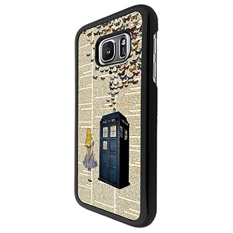 477 - Vintage News Alice In Wonderland Doctor Who Tardis Call Box Butterflies Design For Samsung Galaxy S7 G930 Fashion Trend CASE Back COVER Plastic&Thin Metal - Black
