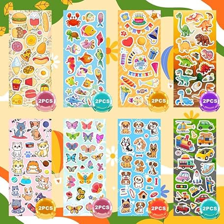 Thông tin sản phẩm 48 Sheets Stickers for Kids, Cute Kids Stickers Variety Pack for Scrapbooking, Teachers Classroom Prizes, Goodie Bag Stuffers Including Animals, Cars, Dinosaurs, Fishes, Hearts, Stars and More