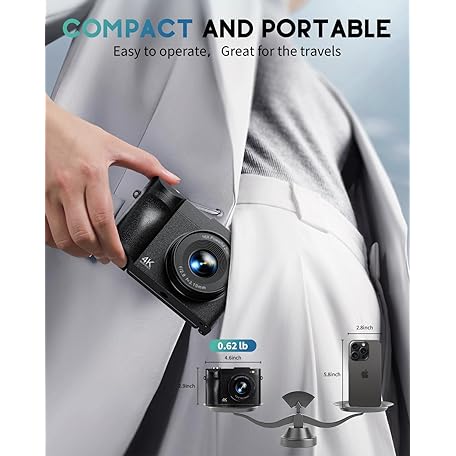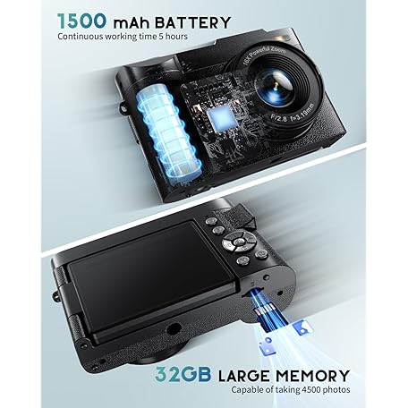 4K Digital Camera for Photography, 50MP Vlogging Camera for YouTube, Compact Cameras with 2.8" 180° Flip Screen, 16X Digital Zoom, Point and Shoot Camera with 32GB SD for Beginners, Travel, Family