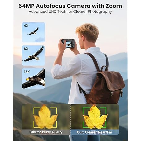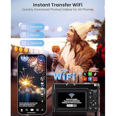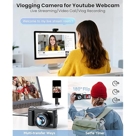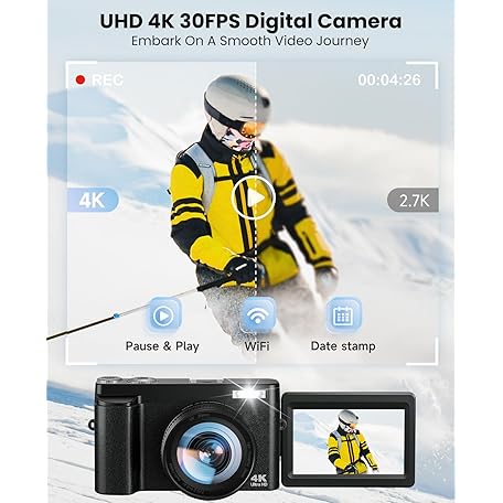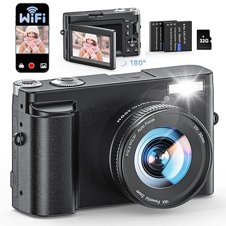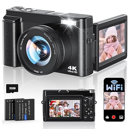 4K Digital Camera for Photography, WiFi Autofocus 64MP Vlogging Camera for YouTube, 180° 3" Flip Screen 30FPS Video Cameras with Flash Anti-Shake 16X Zoom 32GB Card, Compact Travel Digital Camera