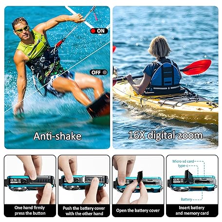 Sản phẩm 4K Underwater Camera 16FT Waterproof Camera with 32GB Card 64MP Autofocus Dual-Screen Selfie Underwater Camera for Snorkeling Waterproof Compact Floatable Digital Camera 1250mAh Battery Type-C (Blue) đang được bán với giá ưu đãi là $87.1891 tại nước Mỹ.