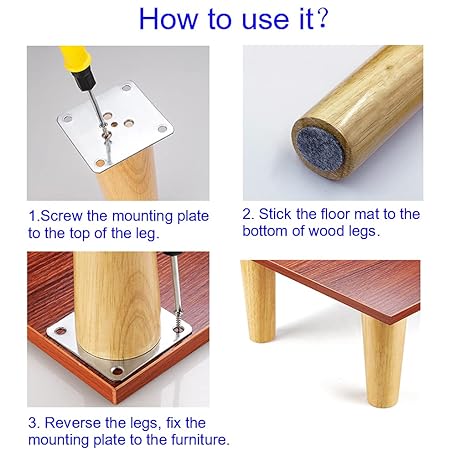 Thông tin sản phẩm 4PACK Solid Wood Furniture Legs 6 Inch Sofa Legs, Replacement Legs Mid Century Modern Legs for Couch End Table TV Stand Bed Dresser Cabinet, Accessorizes Included