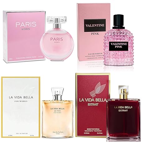 4PCS Perfume Set for Women Fragrance Gift Set with Vanilla,Sweet Fruity Eau De Parfume| 3.4 Fl Oz Each(La Vida Bella,La Vida Bella Ext,Valentine Pink,Paris Women)