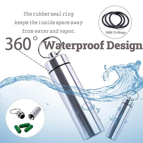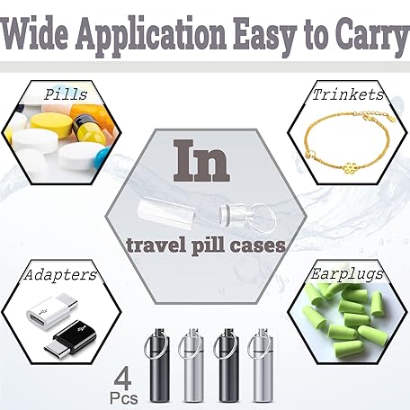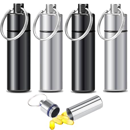 4pcs Pill Case, Travel Pill Case, Keychain Pill Holder, Portable Container Mini Metal Case,Small Portable Waterproof Pill Boxes with Keychain, Medicine Bottle for Outdoor Camping Travel
