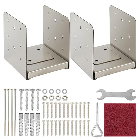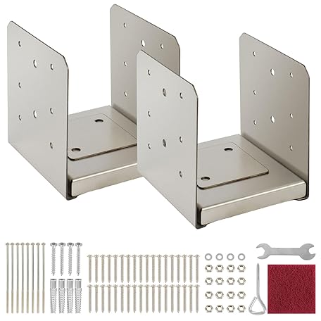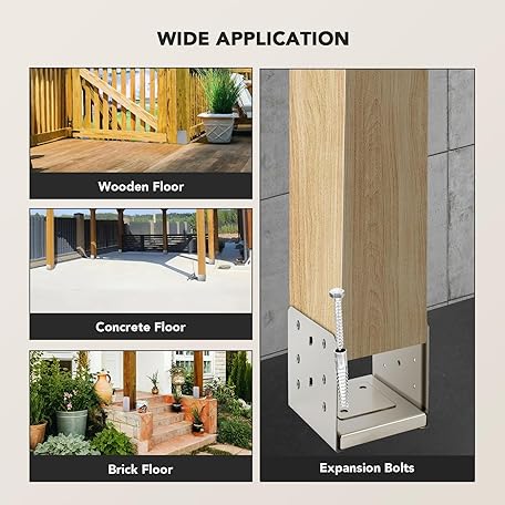 4"x 4" Post Base, 2Pcs Stainless Steel Adjustable Post Anchor Bracket (Internal 3.5 x 3.5), Adjustable Post Base for Pavilion Deck Porch Handrail Railing Support Decorative Anchor Plate