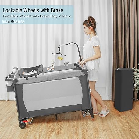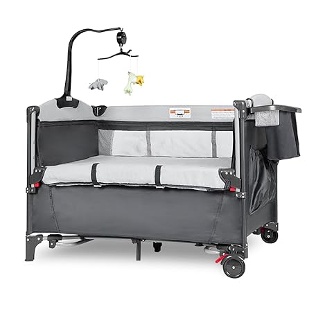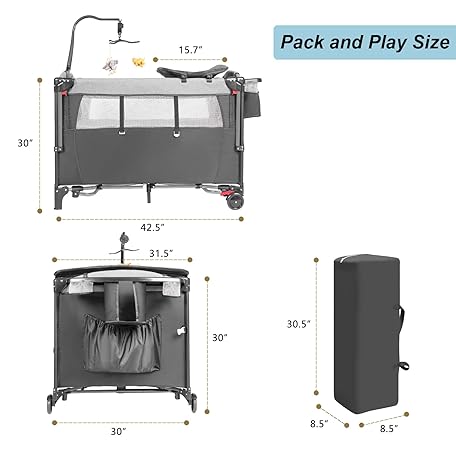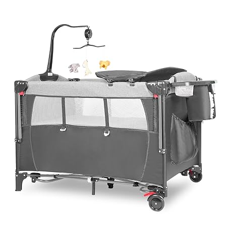 Thông tin sản phẩm 5-in-1 Pack and Play, Baby Bassinet Bedside Sleeper with U-Shaped Diaper Changer, Portable Toddler Playard for Newborn Toddlers, Baby Crib with 4 Adjustable Height, Carry Bag,Easy to Install (Grey)