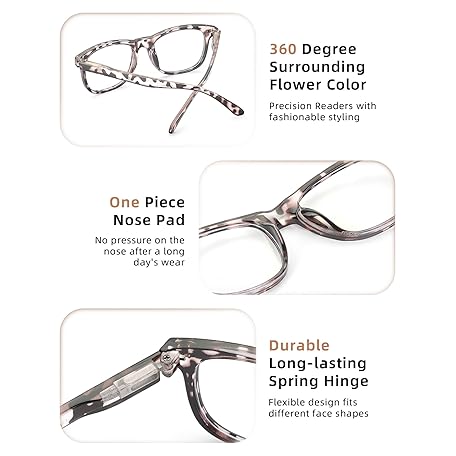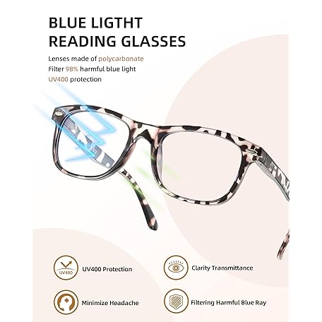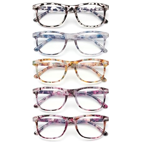 • 5 Pack Reading Glasses For Women - Stylish Blue Light Blocking Readers -Womens Men Spring Hinge Eyeglasses (2.00)