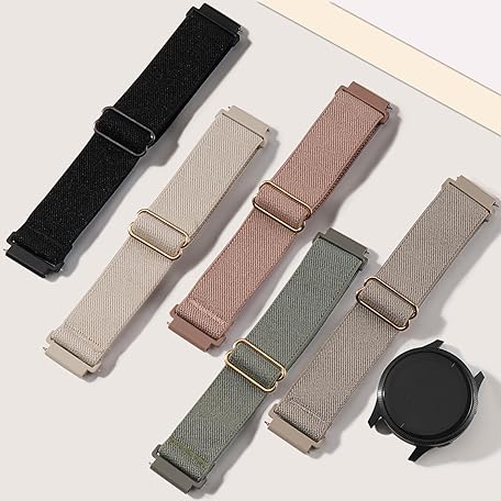 5 Pack Stretchy Nylon Watch Bands Compatible with Garmin Vivoactive 5/6/Forerunner 55/165,20mm Soft Elastic Fabric Adjustable Replacement Sport Straps for Garmin Venu Sq 2 Women Men