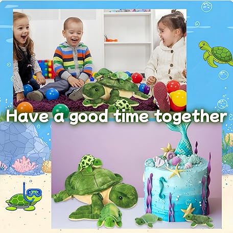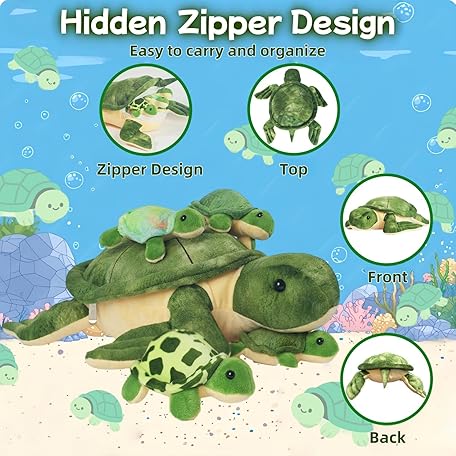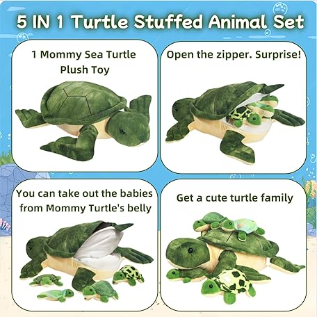 Thông tin sản phẩm 5 Piece Sea Turtle Stuffed Animal with Babies Inside, 12'' Mommy Stuffed Turtle Plush Pillow Toy with 3 Little Turtles Tortoise Toys for Kids Girls Boys Birthday Christmas Plush Gifts Party Favors