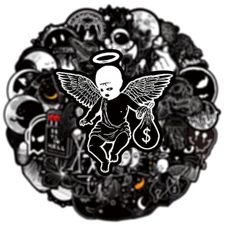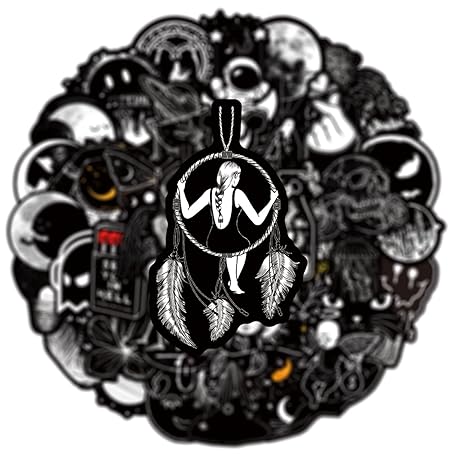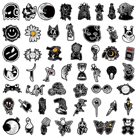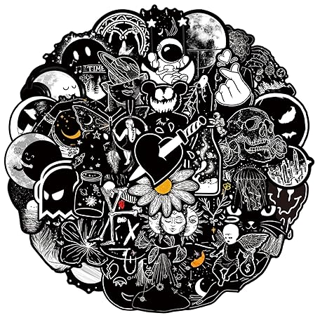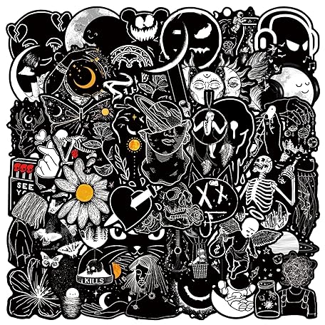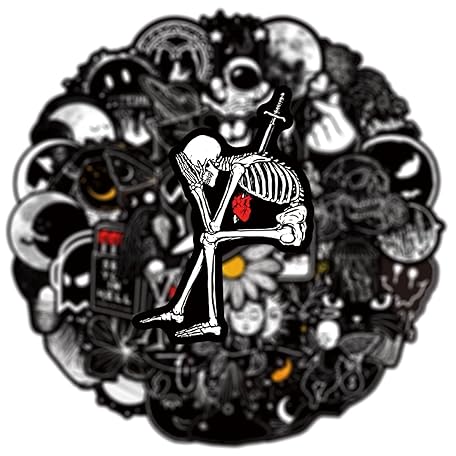 50pcs Gothic Stickers Pack, Black and White Skull Stickers for Water Bottle Laptop Luggage Skateboard Planner Scrapbooking, Waterproof Vinyl Horror Decals for Teens Adults (Black-A)
