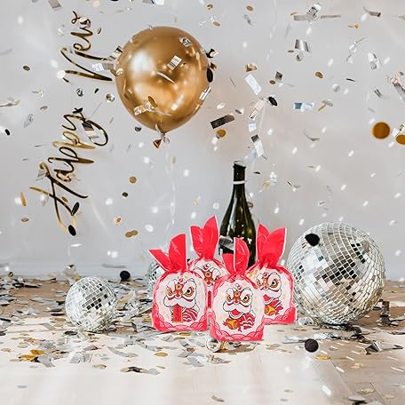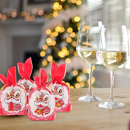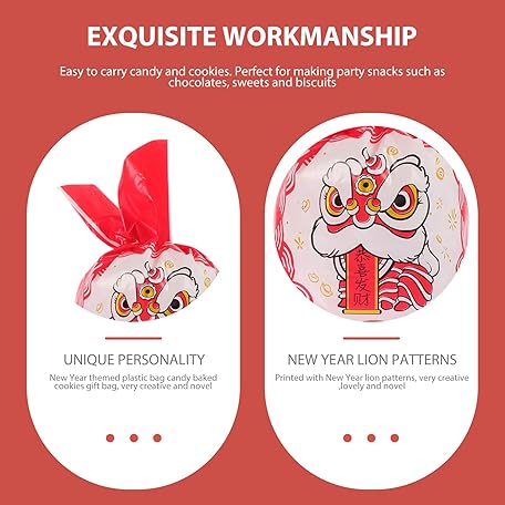 50Pcs New Year Bag Snacks Storage Pouch Bakery Bag Chinese New Year Candy Biscuit s Christmas Treat s Chinese Candy Cookies s Snowflake Crisp Plastic Party