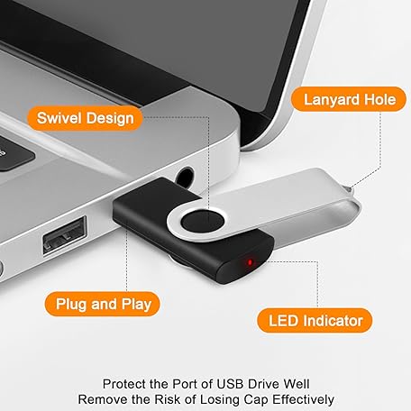512MB Flash Drive 10 Pack, Bulk USB 2.0 Thumb Drives Pendrive Memory Sticks with Lanyards, Swivel USB Storage Flash Drive Photo Memoirs Data Transfer and Backup Zip Jump Drives Office Supplies