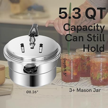 Sản phẩm 5.3 Quart Pressure Cooker, 10 Psi Induction Compatible Pressure Canner w/Multiple Pressure Control & Protection, Canning Rack Included đang được bán với giá ưu đãi là $61.0291 tại nước Mỹ.