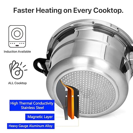 Thông tin sản phẩm 5.3 Quart Pressure Cooker, 10 Psi Induction Compatible Pressure Canner w/Multiple Pressure Control & Protection, Canning Rack Included