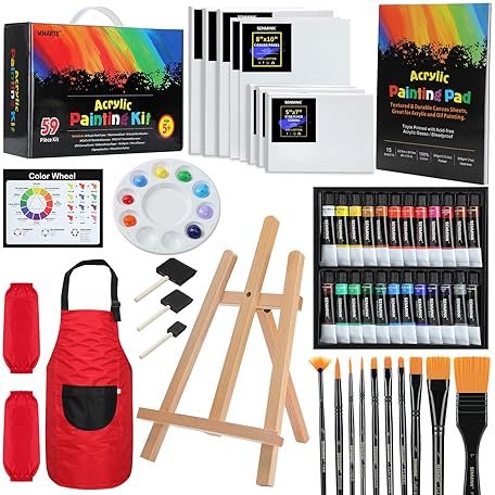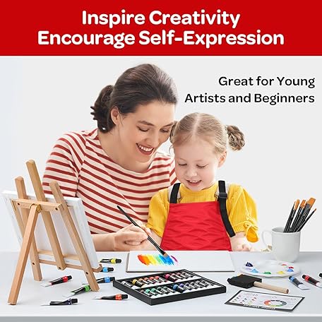 Thông tin sản phẩm 59pcs Acrylic Paint Set - Art Supplies Kit with 24 Non-Toxic Paints, Easel, Brushes, Canvas for Kids, Artists and Beginners, Red