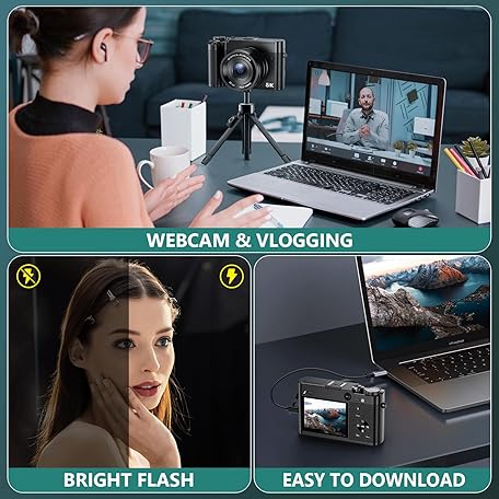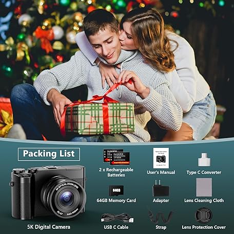 Thông tin sản phẩm 5K Digital Camera, 64MP Cameras for Photography with 6X Optical Zoom & Autofocus, WiFi Vlogging Camera for YouTube Video, Dual-Lens, 2 Batteries, 64GB Card & Flash, Best Cameras for Content Creators