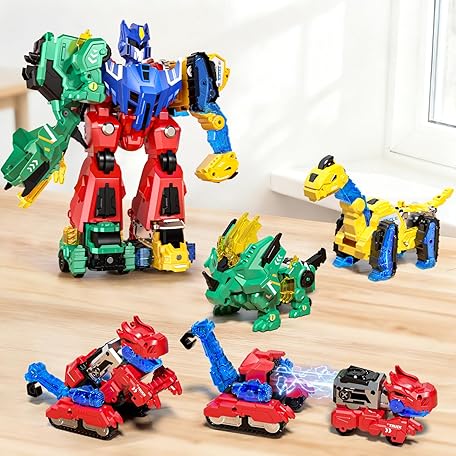 Thông tin sản phẩm 6-in-1 Dinosaur Transforming Robot Toys Set,STEM Toy Combine Dinosaur Transform into Robot,Party Birthday Educational Gifts for Kids Age 3 4 5 6 7 8 9 10 Years Old Boys Girls
