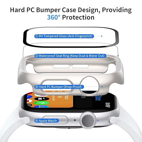6 Pack Case with Tempered Glass Screen Protector for Apple Watch Series 11 Series 10 46mm, Ultra-Thin Scratch Resistant Full Protective Hard PC Bumper Cover for Apple Watch 46mm