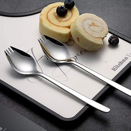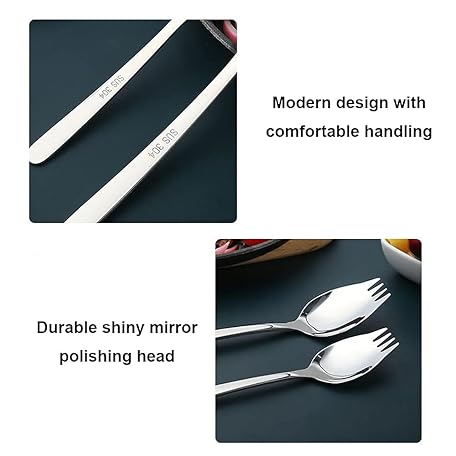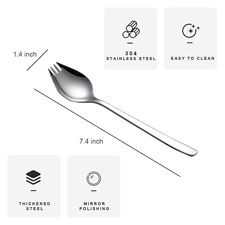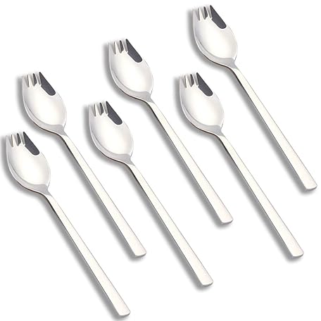 6 Pack Sporks Stainless Steel Forks and Spoons, Muulaii Metal Sporks Fork Spoon Combo for Ice Cream Spoon Salad Forks, Fruit Appetizer Dessert- 7.5 Inch