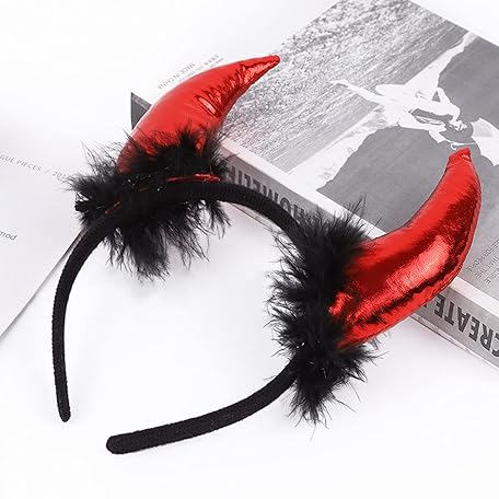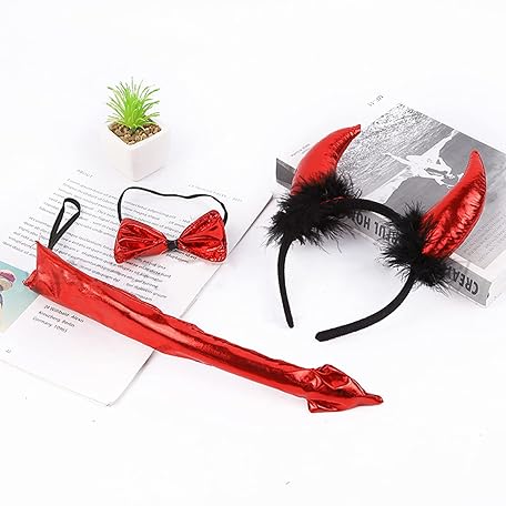 6 Pcs Halloween Devil Horns Headband Bow Tie Tail Red Devils Ears Hair Hoops Bands Bowtie Animal Cow Headpiece Hairband Women Christmas Holiday Festival Dress Up Cosplay Birthday Party Accessories