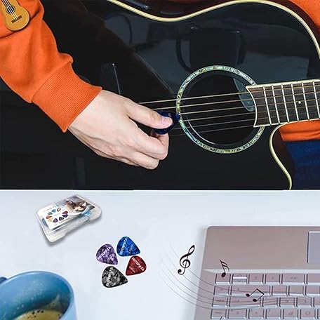 Thông tin sản phẩm 60 Pack Guitar Picks with Organizer Storage Box, 0.5 0.58 0.75 0.84 1.0 1.2mm Includes Thin Medium Heavy Thickness, Variety Colorful Celluloid Plectrums for Bass Electric Acoustic Guitars Ukulele