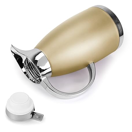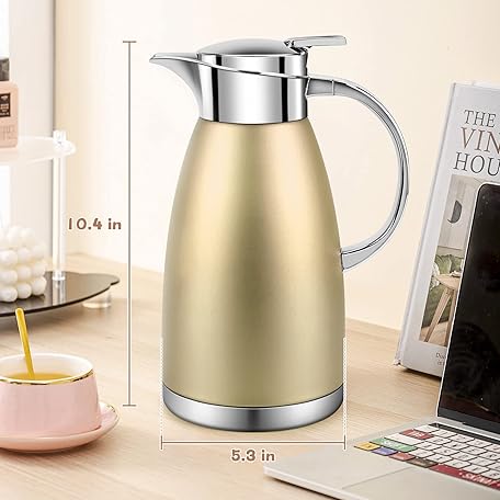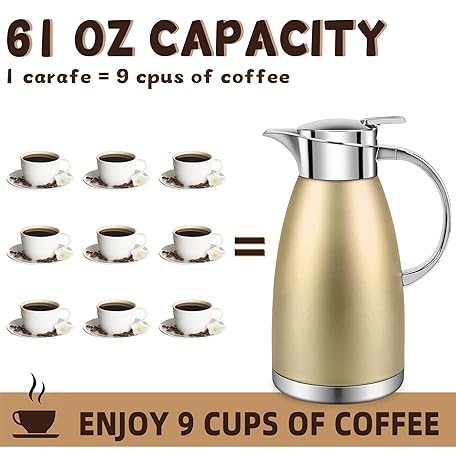 61oz Coffee Carafe Airpot Insulated Coffee Urn Stainless Steel Vacuum Thermal Pot Flask Dispenser for Coffee, Hot Water, Tea, Hot Beverage - Keep 12 Hours Hot, 24 Hours Cold (Gold)