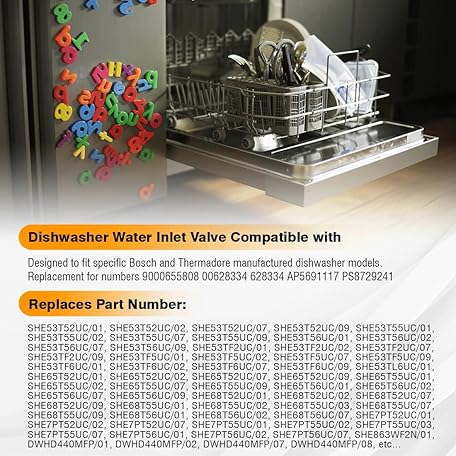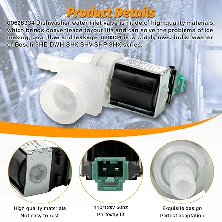 • 628334 OEM Dishwasher Water Inlet Valve 00628334 for Bosch Thermadore Dishwasher 10023852 9000655808 AP5691117 PS8729241 AP7193108 Part Updated Fix E15 Error Codes