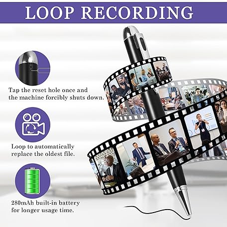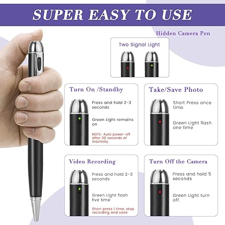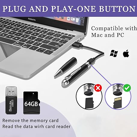 Thông tin sản phẩm 64GB Hidden Camera, Spy Cameras Pen, Portable Body Camera with 1080P, Loop Recording, Rechargeable Mini Cameras for Home, Office