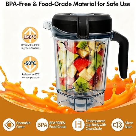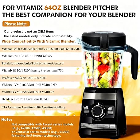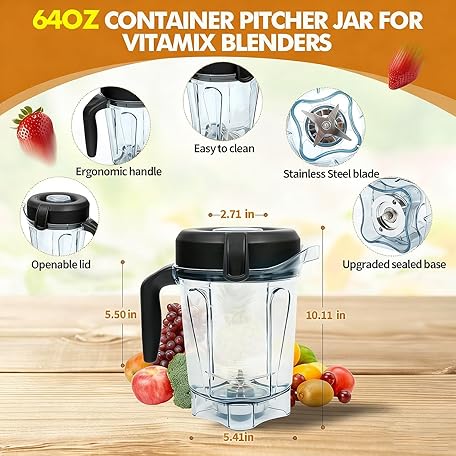 64oz Low-Profile Blender Pitcher Compatible with Vitamix 5200/7500/5000/6300/750/E310/VM0102/VM0103/VM0197- BPA-Free Container Jar Cup for Classic & Explorian Series Etc