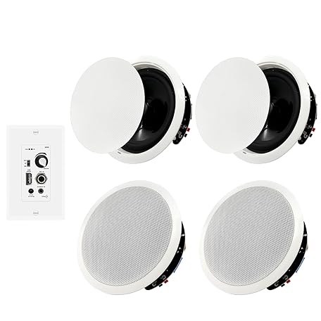 6.5'' Bluetooth in Ceiling Speakers with Wall Amplifier Receiver 600W Flush Mount Ceiling & in-Wall Speaker System for Home Theater Office Bathroom Living Room Kitchen(2Pairs)