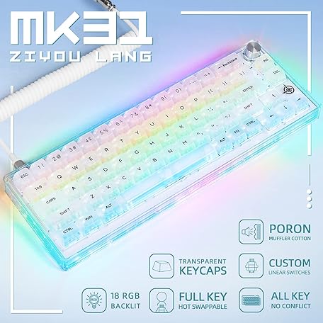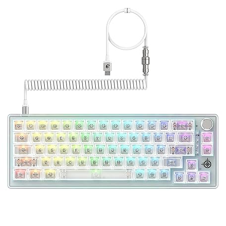 Sản phẩm 65% Hot-Swap Wired Mechanical Gaming Keyboard Programmable with Transparent 66 Key Full Side RGB OWERTY Linear Ice White Switch Custom Coiled C to A Cable Media Knob 2-IN-1 Case for WIN/PC/MAC(White) đang được bán với giá ưu đãi là $46.8591 tại nước Mỹ.