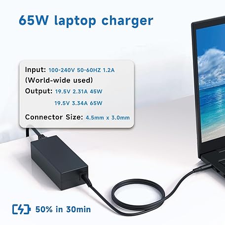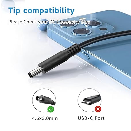 Thông tin sản phẩm 65W Laptop Charger 4.5mm tip Compatible with Dell Inspiron 11 13 14 15 17 3000 5000 7000 Series, Compatible with Dell Vostro Series Vostro 13 14 15 16 3000 5000 Series 5410 5471 5481AC Adapter