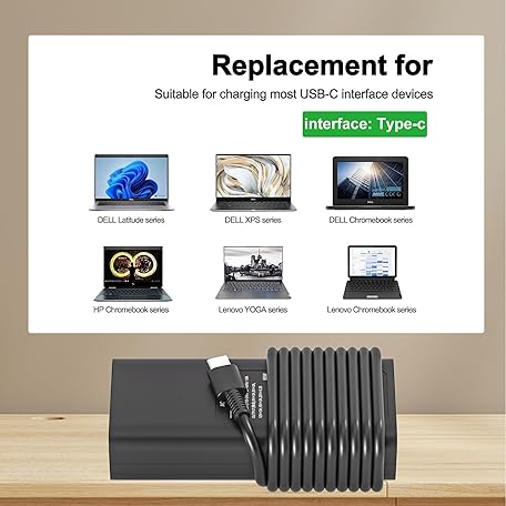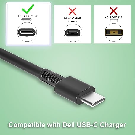• 65W USB-C Laptop Charger fit for Dell Inspiron 2-in-1 13 14 15 16 3000 5000 7000 7425 7440 7445 7486 3520 7640 7630 7706 7390 7306 Latitude 3140 5320 5410 5420 5440 5450 5520