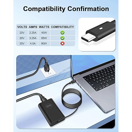 Thông tin sản phẩm 65W USB C Laptop Charger for Dell Latitude 5420 5450 7200 7410, Type C Charger for HP Spectre x360, Envy, Chromebook, EliteBook X360, Pavilion, Elite x2 Power Adapter