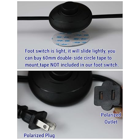 • 6ft/1.8m On/Off Extension Cord Foot Switch Pedal, Switch in Middle of Cord, 2-Prong Polarized Plug and Plug in Outlet AWG18 250VAC Step Switch Floor Lamp Christmas Tree Light Push Button Black