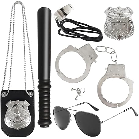 Sản phẩm 6Pcs Police Pretend Play Toys Set,Kids Detective Set Accessories,Police Officer Costumes with Sunglasses,Badges,Handcuffs,Police Baton,Whistle for Kids đang được bán với giá ưu đãi là $10.8891 tại nước Mỹ.