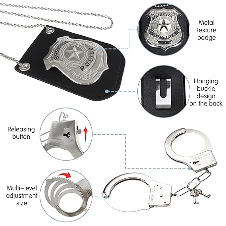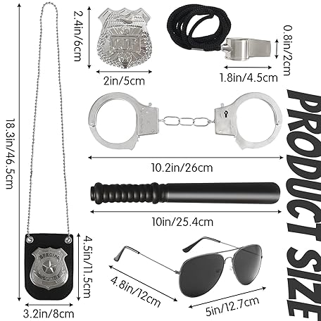Thông tin sản phẩm 6Pcs Police Pretend Play Toys Set,Kids Detective Set Accessories,Police Officer Costumes with Sunglasses,Badges,Handcuffs,Police Baton,Whistle for Kids