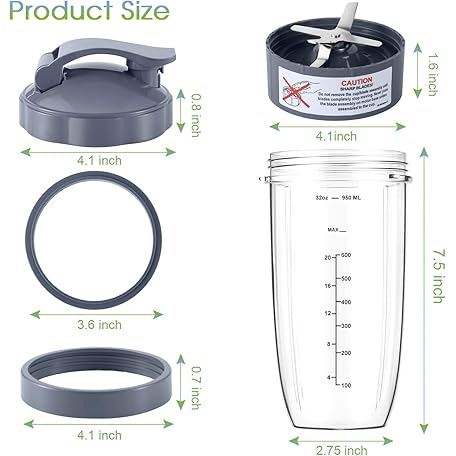 Sản phẩm 7 Pieces nutribullet Blender Cups & Blade Replacement Set 32oz Huge Cup with 1 Flip-Top To-Go Lid and 1 Lid Ring & Premium Extractor Blade with Compatible with NutriBullet 600w/900w Blender đang được bán với giá ưu đãi là $31.5991 tại nước Mỹ.