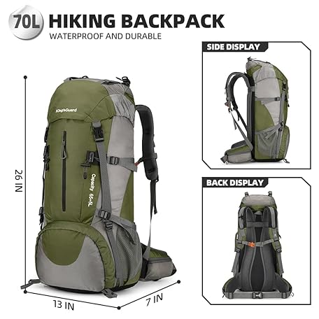 Thương hiệu King'sGuard là cái tên nổi tiếng được rất nhiều khách hàng trên thế giới chọn lựa. Với kiểu dáng đẹp mắt, sang trọng, sản phẩm 70L Hiking Backpack with Rain Cover Lightweight Travel Backpack Waterproof Camping Backpack là sự lựa chọn hoàn hảo nếu bạn đang tìm mua một món cho riêng mình.