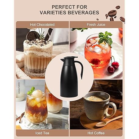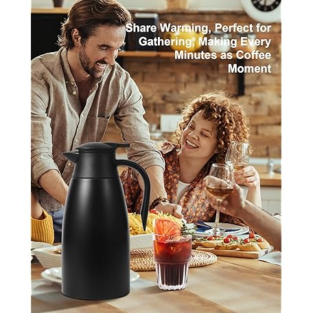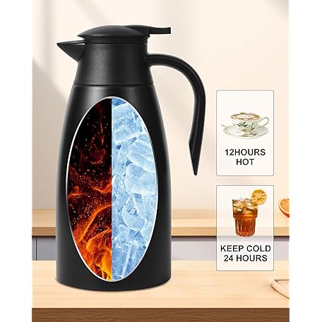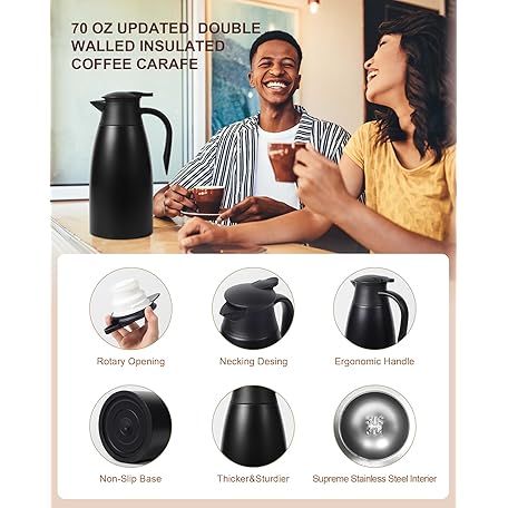 Thông tin sản phẩm 70oz Thermal Coffee Carafe for keeping hot,Updated Carafes for hot liquid, Stainless Steel Insulated Thermal Pot for Coffee, Hot Water,Keep Hot 12 Hours (Black 2.1 L)