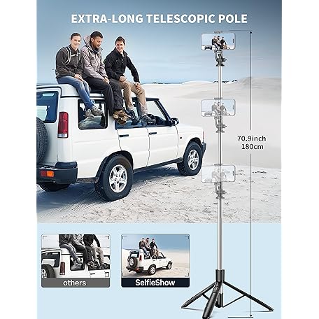 Thương hiệu SelfieShow là cái tên nổi tiếng được rất nhiều khách hàng trên thế giới chọn lựa. Với kiểu dáng đẹp mắt, sang trọng, sản phẩm 71" Phone Tripod & Selfie Stick, All in One Extendable Cell Phone Tripod with Wireless Remote, Tripods Stand for iPhone & Travel Selfie Stick 360° Rotation Compatible with iPhone Android, Camera là sự lựa chọn hoàn hảo nếu bạn đang tìm mua một món cho riêng mình.