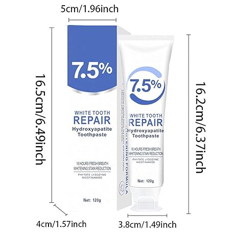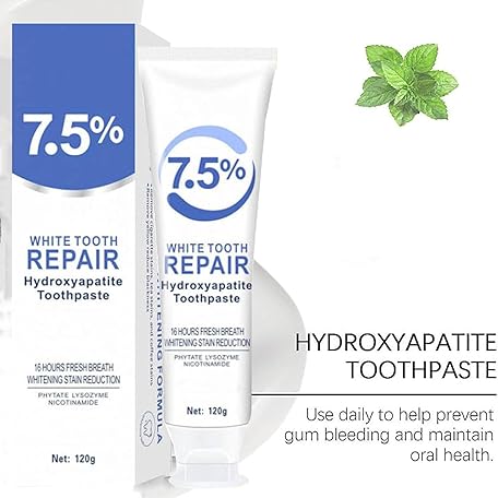Thông tin sản phẩm 7.5% Hydroxyapatite Toothpaste, Fluoride-Free Hydroxyapatite Toothpaste Whitening 7.5, 7.5% Nano Hydroxyapatite ToothpasteWhite Tooth Repair, Tooth Strengthening, Gentle Mint, Fresh Breath (2pcs)
