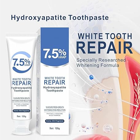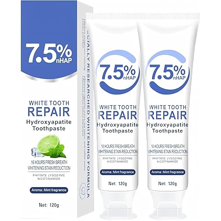7.5% Hydroxyapatite Toothpaste for Enamel Protection, Fluoride-Free Formula with Gentle Mint, for Sensitive Teeth, Daily Protection, Long-Lasting Fresh Breath, 4.23 Oz (2)