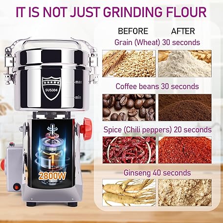 Thông tin sản phẩm 750g Grain Mill, 304 Stainless Steel Spice Grinder, 2800W High-speed Commercial Flour Mill, Superfine Flour Mill Grinder for Home, Grain Mill for Flour