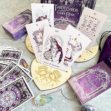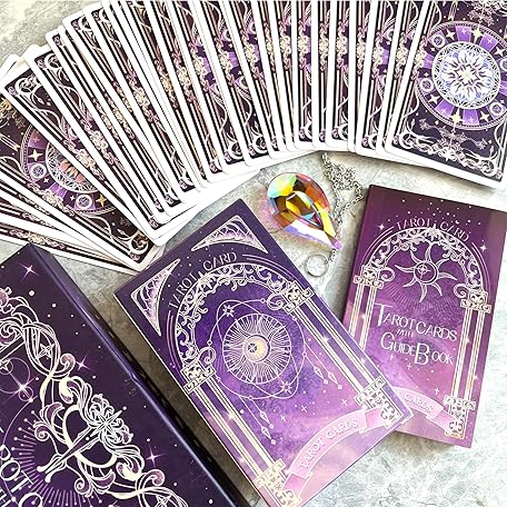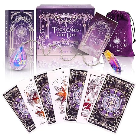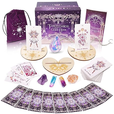 Sản phẩm 78 Tarot Cards with Guide Book - Tarot Deck Gift Set with Tarot Cloth, Chakra Stones & Tarot Bag, Purple Tarot Cards Fortune Telling Game Craft Cardboard for Beginners and Expert Readers đang được bán với giá ưu đãi là $21.7891 tại nước Mỹ.