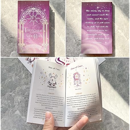 Thông tin sản phẩm 78 Tarot Cards with Guide Book - Tarot Deck Gift Set with Tarot Cloth, Chakra Stones & Tarot Bag, Purple Tarot Cards Fortune Telling Game Craft Cardboard for Beginners and Expert Readers
