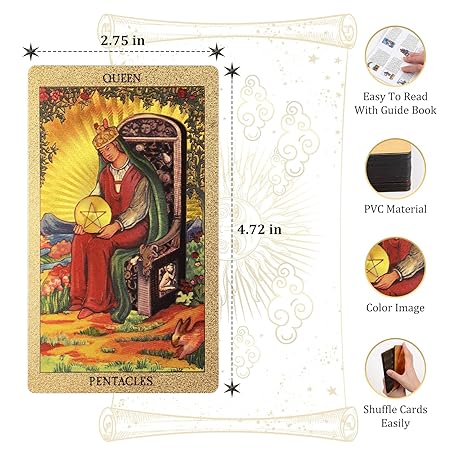 Thông tin sản phẩm 78 Tarot Cards with Guide Book,Rider Waite Tarot Deck,Gold Foil Tarot Cards Deck for Beginners Waterproof and Durable